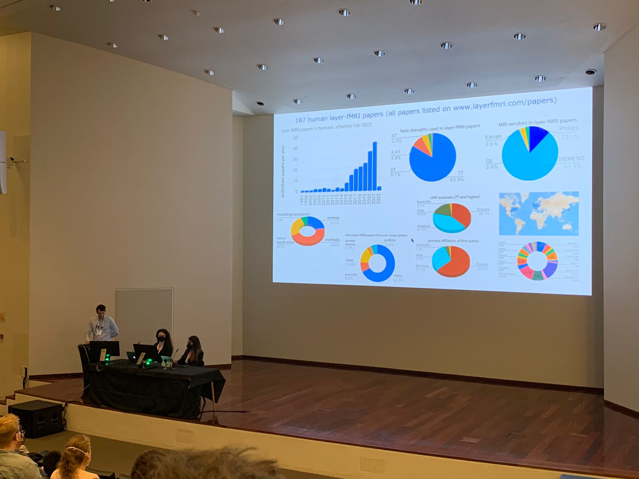 From left to right: Jiajia, Yinghua, Renzo, Kamil at ISMRM 2019 discussing the value of layerfMRI in Neuroscience